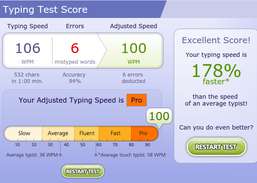 Uanset om du er en professionel maskinskriver eller en computergeni, vil hastighedstesten til at skrive få dig til at sidde på kanten af din stol. I dette spil er dit mål at skrive den givne historie så hurtigt og så præcist som muligt. En passage vises, når testen starter, og du skal bruge dit tastatur til at skrive teksten. Den tid, du har brugt, din skrivehastighed i form af "ord pr. Minut" (wpm) og den gennemsnitlige nøjagtighed tælles øverst på skærmen. Når du har afsluttet opgaven, gives der en rang baseret på dit resultat. Accepter udfordringen nu og stig op til tronen, der hører til verdensklasse-maskinskriver.