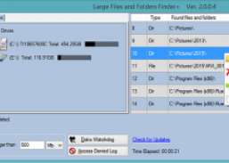 Store filer og mapper Finder + er et praktisk værktøj, som du kan bruge til at lede efter store filer og mapper på lokale eller aftagelige lagerenheder for at bestemme indholdet, der tager for meget diskplads. Appen kalder Windows API'er på lavt niveau og scanner ikke-krypterede NTFS-drev med lynets hastighed. Store filer og mapper Finder + er også i stand til at scanne alle andre typer diske med filsystemer anerkendt af Windows ved hjælp af standardmetoder. Hjælpeprogrammet kan bruges til at søge på din lokale harddisk, kortlagte netværksdrev, USB-drev osv., Så det kan bruges af en almindelig bruger eller en systemadministrator. Søgeresultaterne kan ses i programmets hovedvindue eller eksporteres til Excel til videre behandling. Store filer og mapper Finder + kan spare dig for den nødvendige tid til manuelt at søge efter store filer og mapper. Med dens hjælp kan du bruge størrelse som filtreringskriterier og hurtigt identificere emner, der tager mest diskplads. Nyligt tilføjet Disker Watchdog giver dig besked, hvis brugt plads på disken (e) overstiger det angivne beløb.