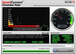 SpeedConnect Connection Tester provides a quick and easy way to test the speed of your Internet connection. The program downloads a file from a Microsoft server (or any other server of your choice), analyzes the measured data and reports your speed in kbps. It also provides a graphical statistical analyzer of your connection quality. This version is the first release on CNET Download.com.