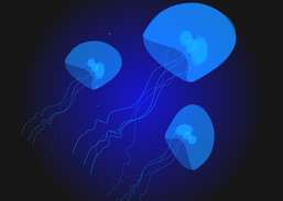 Watch some underwater creatures swimming in dark waters.