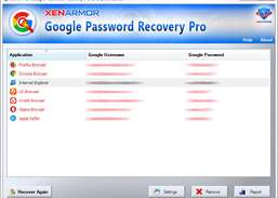 XenArmor Google Password Recovery Pro est le logiciel d'entreprise qui vous aide à récupérer instantanément votre mot de passe Google perdu ou oublié à partir des 30 principaux navigateurs tels que Chrome, Firefox, IE, MS Edge, Opera. Il détecte automatiquement andamp; décrypter les mots de passe à partir du magasin de mots de passe secret de chaque application prise en charge. Une fois récupéré, vous pouvez supprimer tout ou partie du mot de passe Google, évitant ainsi son vol par des pirates, des ransomwares, des voleurs de mots de passe.