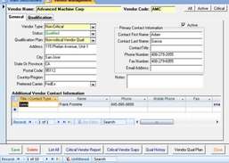 SBS विक्रेता प्रबंधन एक सरल, किफ़ायती उपकरण है जिसका उपयोग आपूर्तिकर्ताओं या विक्रेताओं को प्रबंधित करने के लिए किया जाता है। योग्यता योजनाएं विकसित करें, योग्यता परिणाम रिकॉर्ड करें, और अपनी AVL या स्वीकृत विक्रेता सूची बनाए रखें। आपूर्तिकर्ताओं के चयन, मूल्यांकन और पुनर्मूल्यांकन के लिए मानदंड स्थापित करें। योग्यता अंतराल और दोषों को उजागर करने के लिए रिपोर्ट का एक समृद्ध सेट उपलब्ध है। कार्यक्रम ISO 9001:2015 और AS9100 अनुपालन के लिए प्रयास करने वाले छोटे व्यवसायों के लिए आदर्श है। नि:शुल्क, पूर्ण विशेषताओं वाले डेमो संस्करण हमारी वेबसाइट से डाउनलोड किए जा सकते हैं। खरीदने के पहले आज़माएं!