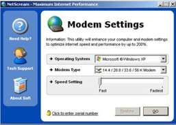NetScream के साथ अपने इंटरनेट कनेक्शन की गति बढ़ाएँ। बाजार में सबसे अच्छे मॉडेम एन्हांसर में से एक, यह आपके मॉडेम की डाउनलोड और अपलोड गति को बढ़ाता है। उपयोग करने में बहुत आसान, Microsoft Windows के सभी संस्करणों के साथ पूरी तरह से संगत और सभी इंटरनेट कनेक्शन प्रकारों के साथ संगत। संगीत, फ़िल्में डाउनलोड करें और इंटरनेट गेम तेज़ी से खेलें।