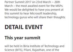 Con immenso piacere, vorremmo informarti e invitarti al Microsoft Student Partner Summit 2017 il 23 marzo - 26 marzo - l'evento più atteso per gli MSP. Saremo lieti di presentarvi questo summit per ascoltare la leadership di Microsoft, i guru della tecnologia che condivideranno i loro pensieri .