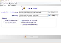 Può essere usato per dividere file di grandi dimensioni in parti più piccole e poi unirle, per esempio al fine di e-mail o scriverli su un CD o DVD .