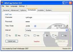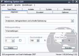 グラフィカル ユーザー インターフェイスを使用して JkDefrag を操作します