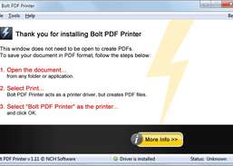 Bolt Free PDF Programa de Software da Impressora. Crie PDFs em velocidades extremamente rápidas. Use o Bolt para imprimir documentos PDF em vez de uma impressora. Com um driver de impressora PDF, você pode imprimir arquivos PDF a partir de qualquer aplicativo que possa ser visualizado em qualquer leitor de PDF.