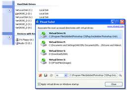 Вы можете использовать виртуальные диски везде - гораздо проще получить доступ к файлам в каталоге проекта, над которым вы сейчас работаете, используя только одну букву диска. Visual Subst предоставляет вам чистый, простой и не отвлекающий пользовательский интерфейс, где вы можете управлять всеми своими виртуальными дисками в любое время.
