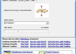 Det finns 3 gester: - flytta i horisontell riktning medan din hand är vertikal. - flytta i vertikal riktning medan din hand är horisontell. - flytta i horisontell riktning med två händer och gör en "zoomande" gest. För att styra en GiMeSpace virtuell skrivbordshanterare måste du använda en som är kapabel till detta. Dessa är de minsta versionerna som stöder detta: GiMeSpace Free Edition version 1.2.0 GiMeSpace Desktop Extender version 2.3.0 GiMeSpace Ultimate Taskbar version 2.3.0 GiMeSpace Desktop Extender 3D version 3.1.0 Dessa program kan laddas ner från http://gimespace. com Du kan justera känsligheten och rullnings-/rörelsehastigheterna genom att justera styrlisterna. Du måste experimentera lite för att hitta de perfekta inställningarna. Under utvecklingen av det här programmet gjordes de flesta ansträngningar för att minimera belastningen på din processor så att den till och med kan köras på netbooks med låg effekt och inte påverkar andra program så mycket. Detta program är nu gratisprogram.