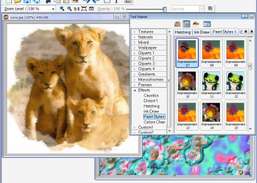 Programmets gränssnitt är inte det mest intuitiva vi någonsin sett, men hjälpfilen innehåller en praktisk handledning för att hjälpa nybörjare att komma igång, och vi tyckte att programmet var ganska lätt att använda när vi väl hade bekantat oss med dess funktioner. Stora grafiska knappar längst upp ger användarna tillgång till de viktigaste funktionerna, och flytande paletter för verktyg och lager ger gränssnittet potential för anpassning. Användare kan börja med en viss bild eller bara en vanlig bakgrund i valfri färg. Programmet låter sedan användare lägga till effekter till bilden i individuella lager, som vart och ett kan justeras för opacitet. Det finns en mängd olika effekter: abstrakta, psykedeliska, tie-dye-mönster, vattendroppar, tegelstenar, löv och mycket mer. Användare väljer helt enkelt de de gillar, justerar efter behov och sparar det färdiga resultatet. För det mesta fungerade programmet bra, även om det ofta verkade ta ett tag att applicera effekterna, och åtminstone en gång var vi tvungna att stänga av programmet och starta om det. Sammantaget tycker vi att programmet producerar bilder som har ett något daterat utseende, men det fungerar bra för vad det är.